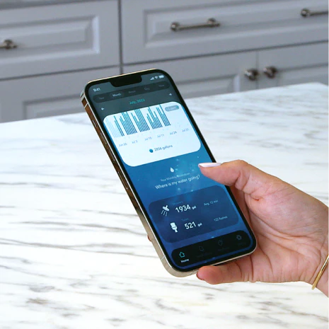 Patent-pending machine learning tracks your household water consumption from your phone, sharing detailed insights of your plumbing and water patterns.
